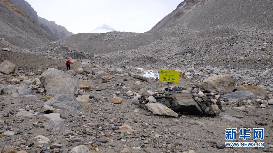 珠峰北坡攀登路線上設(shè)置的垃圾站(5月19日攝)。新華社記者晉美多吉攝