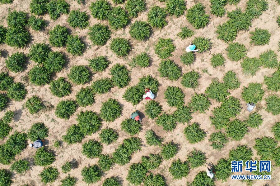 5月21日,河北省清河縣農(nóng)墾金銀花種植專業(yè)合作社社員在采收金銀花(無人機照片)。2017年以來,河北省清河縣在推進農(nóng)業(yè)產(chǎn)業(yè)結構調整過程中,結合市場需求,立足當?shù)赝寥?、氣候特點,依托公司“訂單”引導農(nóng)民發(fā)展金銀花種植。目前,清河縣金銀花種植面積近2000畝,帶動40多個村莊的2000余名農(nóng)民人均增收千元以上。新華社記者牟宇攝