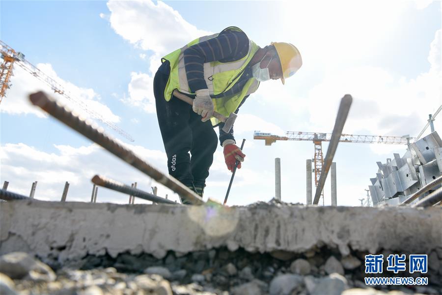 5月23日,工人在烏魯木齊機場改擴建工程施工現(xiàn)場作業(yè)。新華社記者丁磊攝
