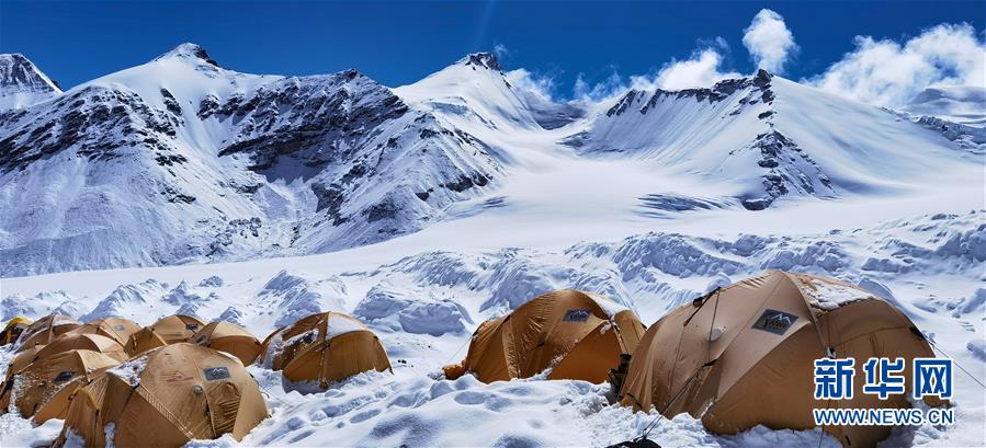 被大雪覆蓋的海拔6500米的珠峰前進營地(5月22日攝,手機照片)。新華社記者晉美多吉攝
