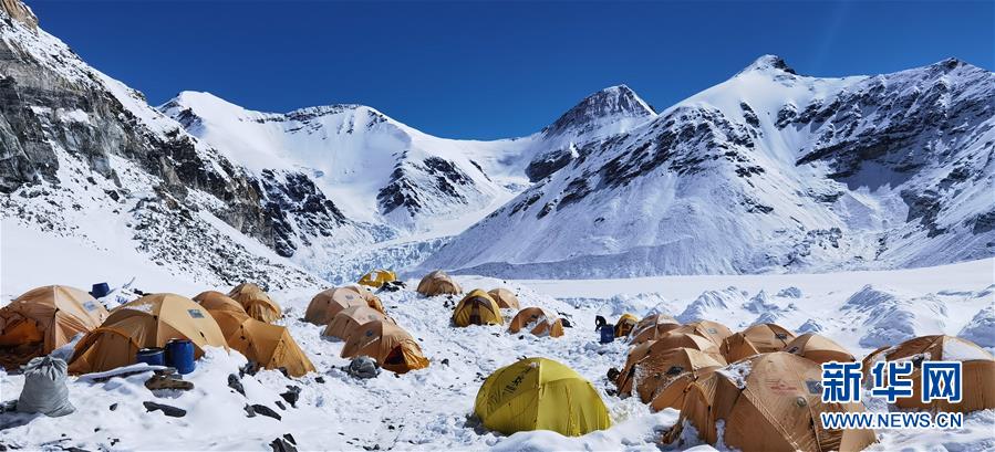 被大雪覆蓋的海拔6500米的珠峰前進(jìn)營(yíng)地(5月22日攝,手機(jī)照片)。新華社記者晉美多吉攝