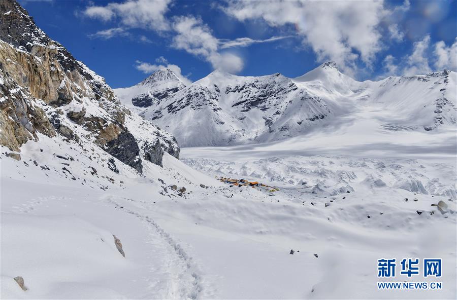 被大雪覆蓋的海拔6500米的珠峰前進(jìn)營(yíng)地(5月22日攝)。新華社記者晉美多吉攝