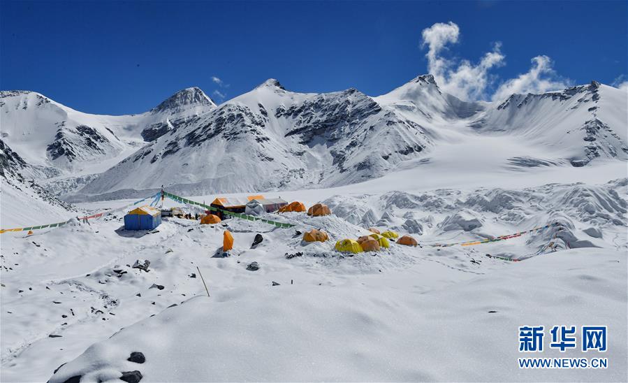 被大雪覆蓋的海拔6500米的珠峰前進(jìn)營地(5月22日攝)。新華社記者晉美多吉攝
