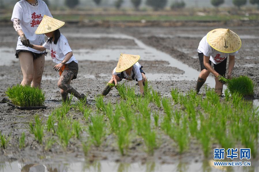5月24日,小朋友與家長在稻田里參加親子插秧比賽。當日,十余名小朋友在家長的帶領下來到浙江省湖州市吳興區(qū)八里店鎮(zhèn)尹家圩糧油植保農(nóng)機專業(yè)合作社的稻田中,參加親子插秧、稻田捉魚等農(nóng)事體驗活動。新華社記者黃宗治攝