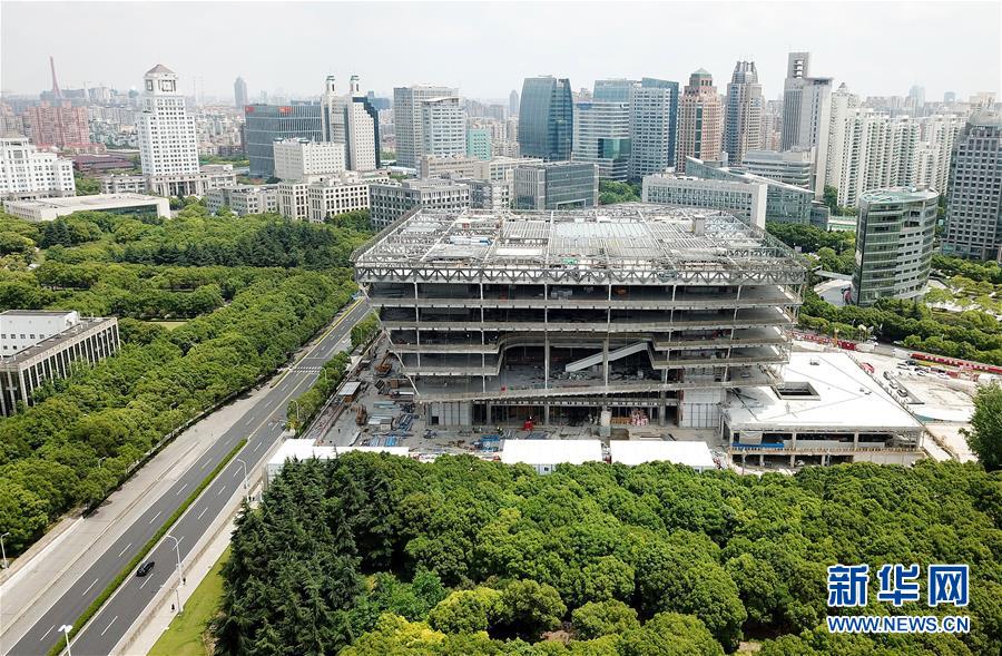 5月22日拍攝的建設中的上海圖書館東館(無人機照片)。 上海圖書館東館位于上海浦東新區(qū),總建筑面積11.5萬平方米。目前,建設工程正在緊鑼密鼓地進行,預計將在2020年內(nèi)竣工,2021年試開放運營。 新華社記者 方喆 攝