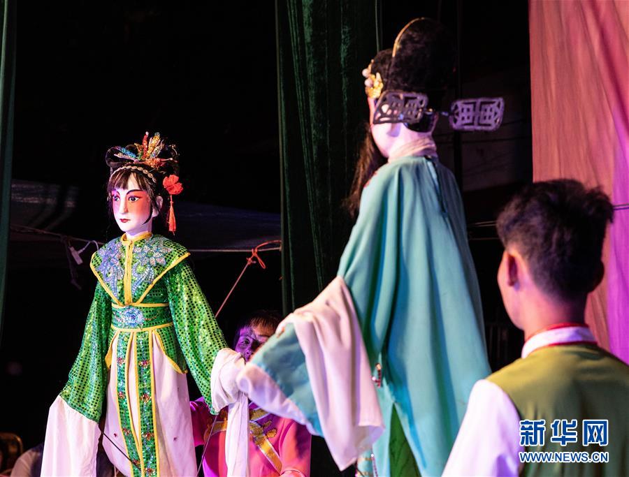 5月24日,海南臨高新風(fēng)人偶戲團的人偶在舞臺亮相。新華社記者張麗蕓攝