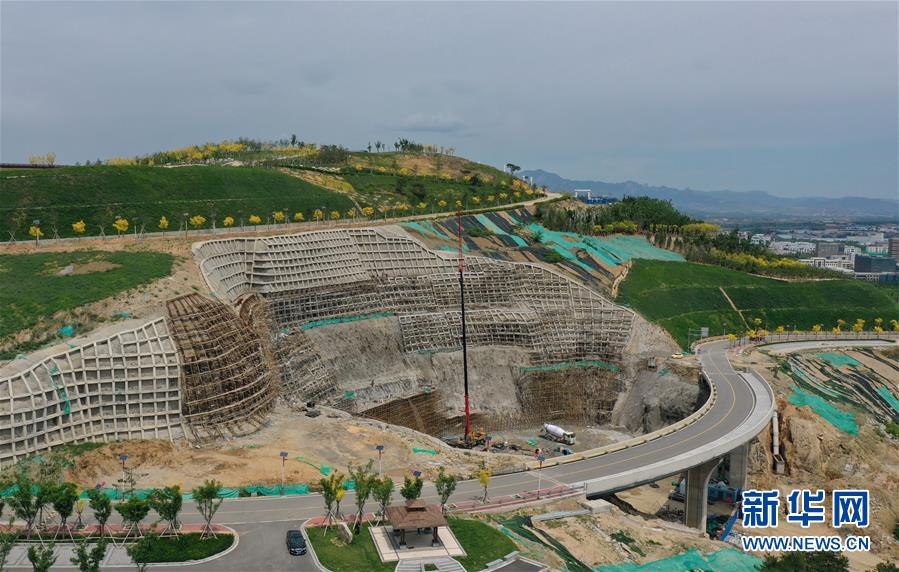 5月25日拍攝的秦皇島經(jīng)濟(jì)技術(shù)開(kāi)發(fā)區(qū)棲云山生態(tài)修復(fù)工程工地(無(wú)人機(jī)照片)。新華社記者楊世堯攝