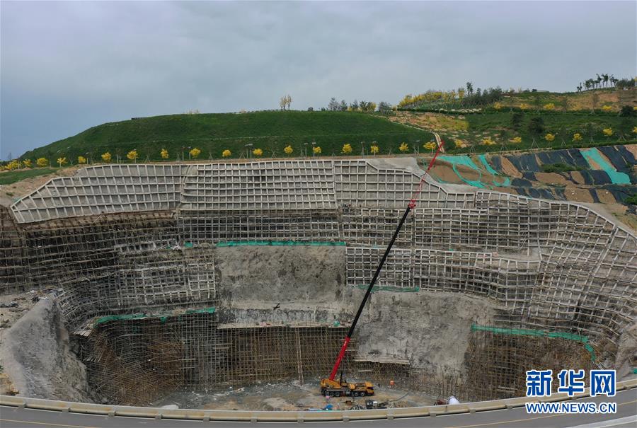 5月25日,工人在秦皇島經(jīng)濟(jì)技術(shù)開(kāi)發(fā)區(qū)棲云山生態(tài)修復(fù)工程工地施工(無(wú)人機(jī)照片)。新華社記者楊世堯攝