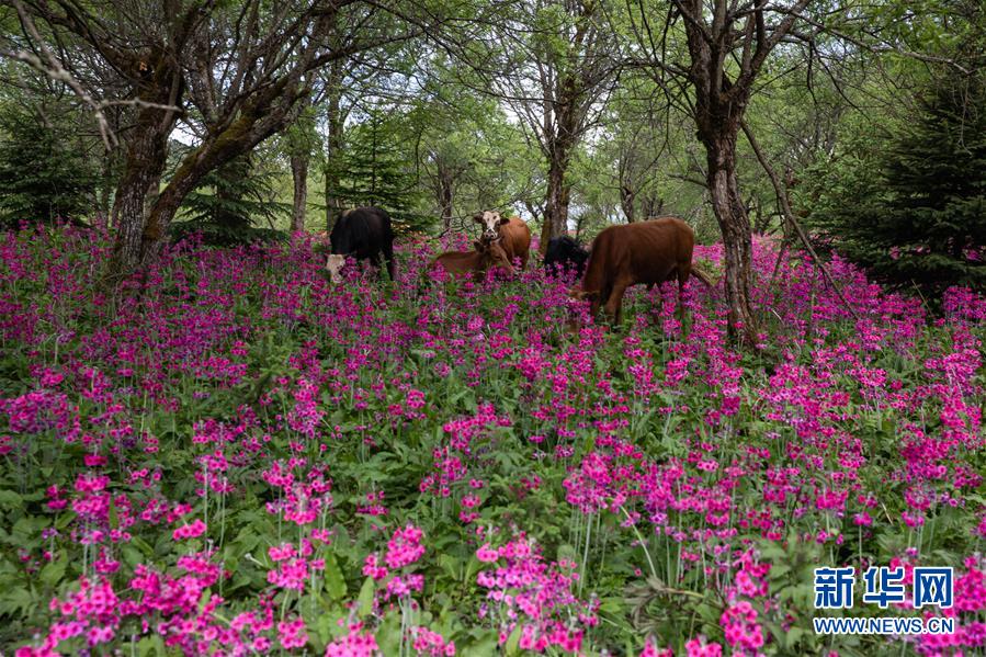 四川省漢源縣桌子山上的報(bào)春花遍地綻放(5月24日攝)。新華社記者江宏景攝