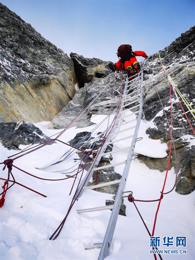 5月27日,2020珠峰高程測量登山隊(duì)正在向珠峰峰頂挺進(jìn)。新華社特約記者扎西次仁攝
