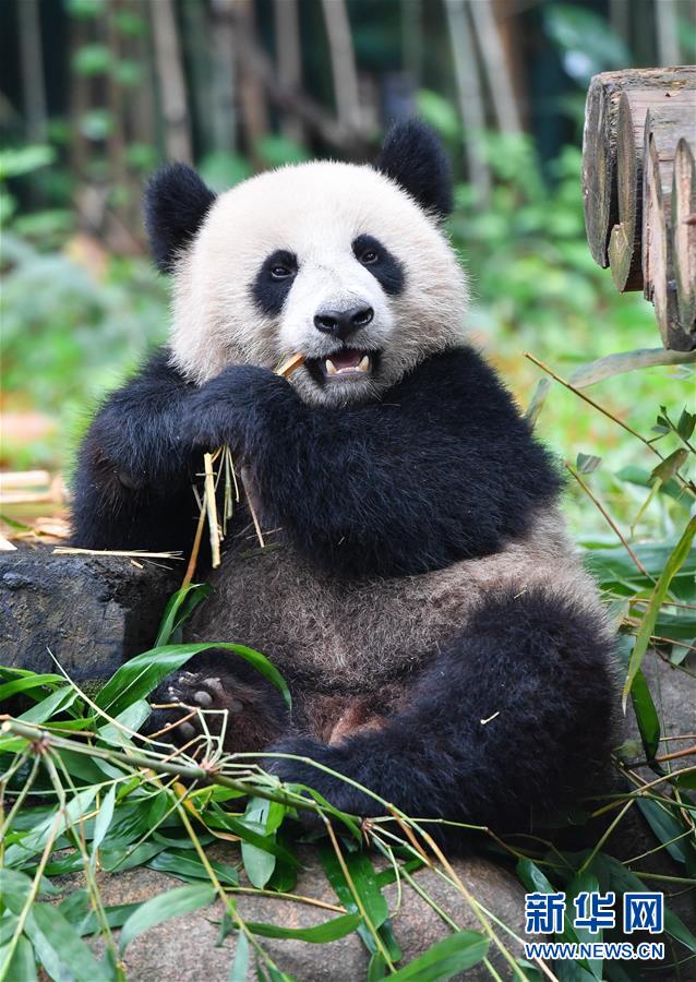 5月27日,大熊貓婷仔在享受竹子大餐。正在享受竹子大餐的廣州長隆野生動(dòng)物世界大熊貓婷仔被大熊貓隆仔搶食,兩只大熊貓上演一場爭食戲碼。新華社記者劉大偉攝