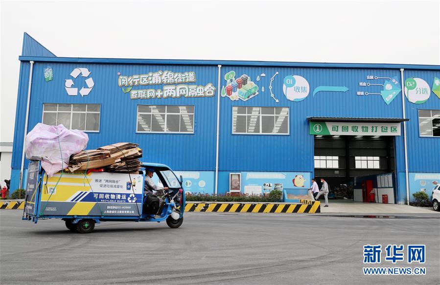 5月27日,一輛可回收物清運(yùn)車(chē)駛?cè)肫皱\街道兩網(wǎng)融合中轉(zhuǎn)服務(wù)站。