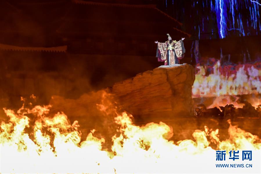 5月28日,演員在大型實景神話音樂劇《昆侖之約》中表演。5月28日,新疆文化旅游新名片——大型實景神話音樂劇《昆侖之約》在烏魯木齊南山景區(qū)上演。該劇融自然山水之美、藝術(shù)文化之光、現(xiàn)代科技之新于一體,為市民獻(xiàn)上一場視聽盛宴。新華社記者丁磊攝
