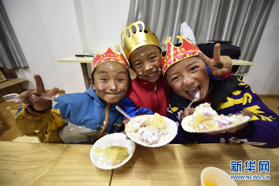 5月27日,玉麥鄉(xiāng)小學(xué)的孩子們?cè)趹c?!吧铡?。新華社記者王炳坤攝