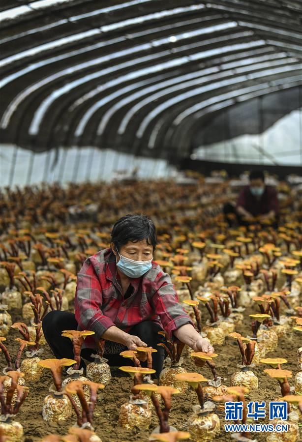 5月30日,在山東省棗莊市嶧城區(qū)峨山鎮(zhèn)食用菌培植扶貧基地,工人在進(jìn)行靈芝種植管理。為了幫助貧困戶穩(wěn)定脫貧,山東省棗莊市嶧城區(qū)峨山鎮(zhèn)采取“公司+基地+農(nóng)戶”的經(jīng)營(yíng)模式,建立食用菌培植扶貧基地,發(fā)展食用菌種植產(chǎn)業(yè),惠及160余名貧困戶。目前,基地已集菌種試驗(yàn)、培育、生產(chǎn)、銷售于一體,年銷售菌棒500多萬袋,生產(chǎn)各類鮮菇1200余噸。新華社記者 范長(zhǎng)國(guó) 攝