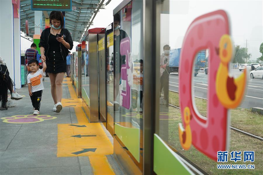 5月31日,乘客在南京市建鄴區(qū)河西新城有軌電車(chē)友誼街站候車(chē)。新華社記者季春鵬攝