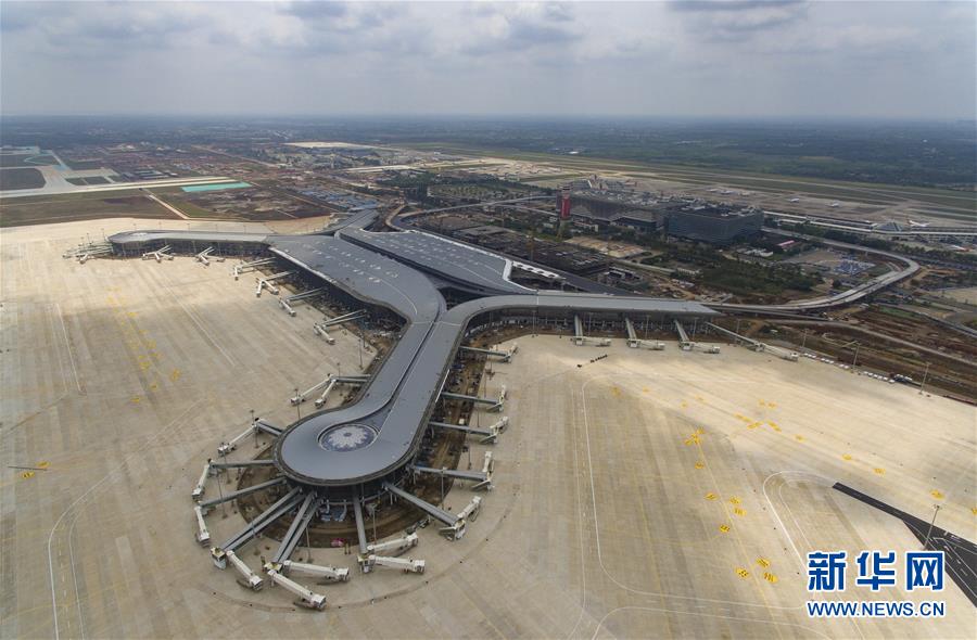 這是4月11日拍攝的建設(shè)中的??诿捞m國際機(jī)場二期項(xiàng)目航站樓(無人機(jī)照片)。新華社記者郭程攝