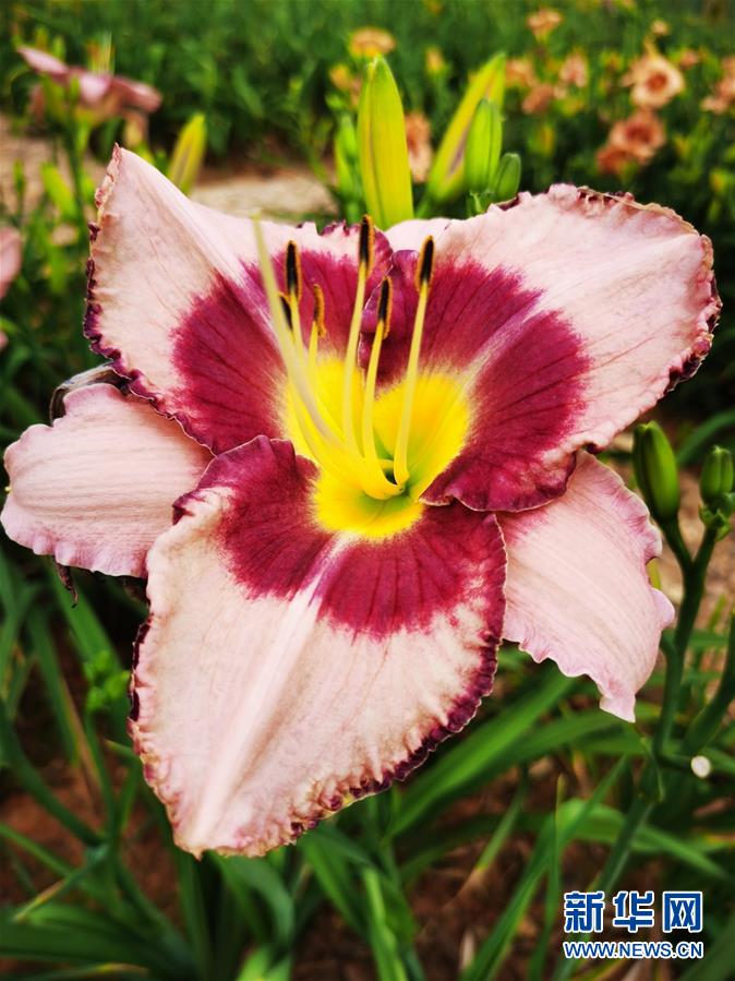 中國(guó)黃花菜(萱草)良種繁育研究中心展示區(qū)里的萱草花(5月29日攝)。新華社記者謝櫻攝。