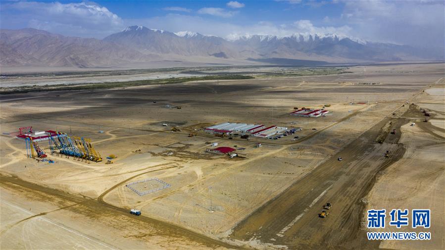 新疆塔什庫爾干機(jī)場施工現(xiàn)場(6月3日攝,無人機(jī)照片)。新華社記者胡虎虎攝。