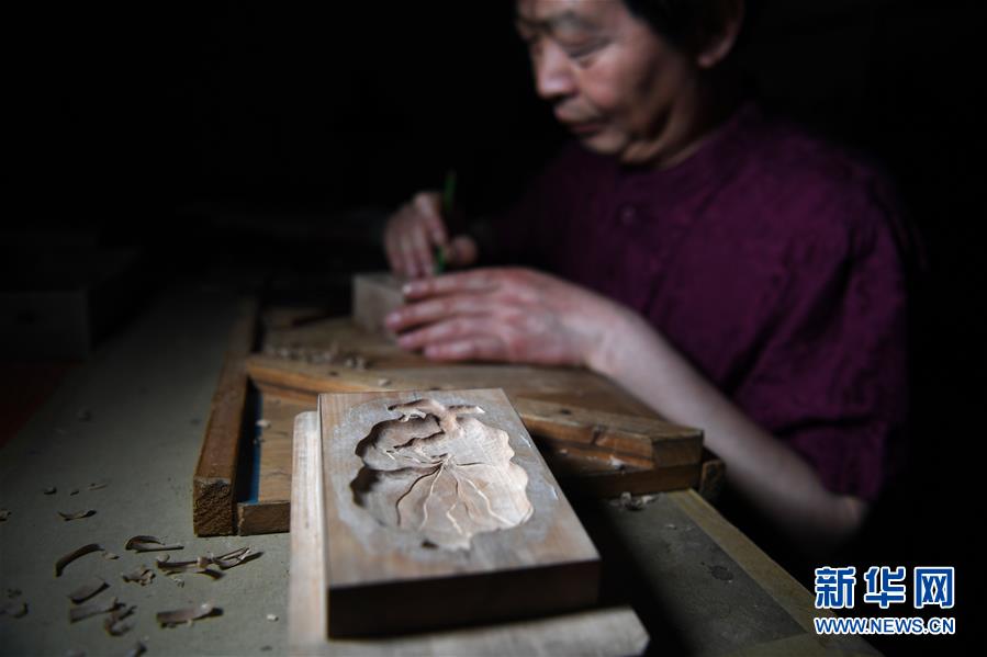 5月20日,安徽省非物質文化遺產(chǎn)徽墨代表性傳承人項德勝在雕刻墨模。新華社記者劉軍喜攝。