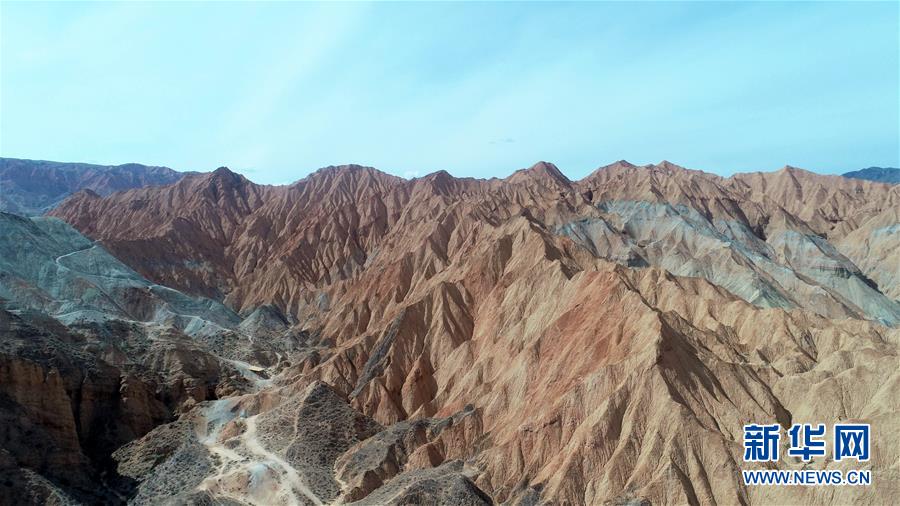 這是6月5日拍攝的位于青海省海南藏族自治州貴德縣境內(nèi)的丹霞地貌(無(wú)人機(jī)照片)。在青海省海南藏族自治州貴德縣境內(nèi),色彩斑斕的丹霞地貌美如畫(huà)卷。新華社記者趙玉和攝。