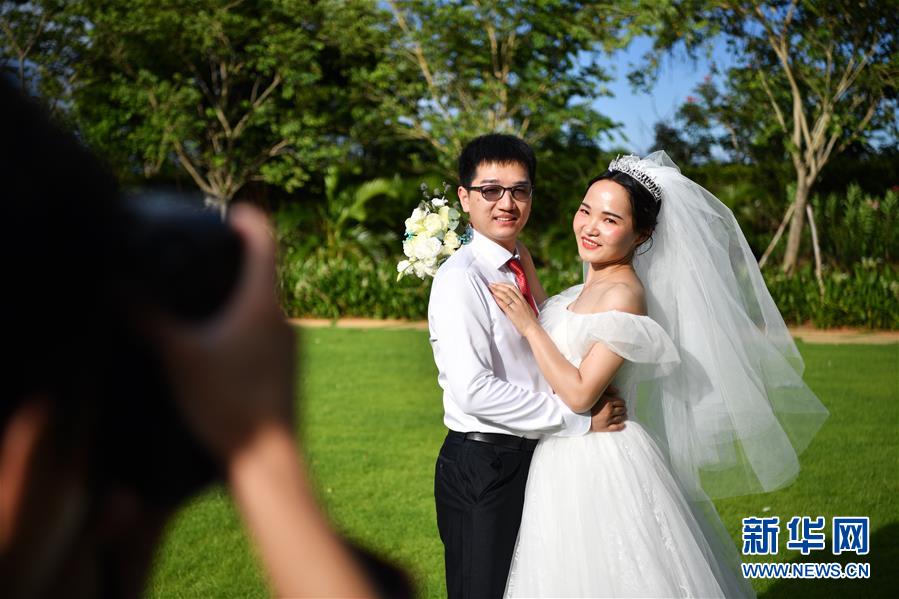 6月6日,在海南博鰲樂(lè)城國(guó)際醫(yī)療旅游先行區(qū),新人準(zhǔn)備參加集體婚禮。 新華社記者 張玉薇 攝