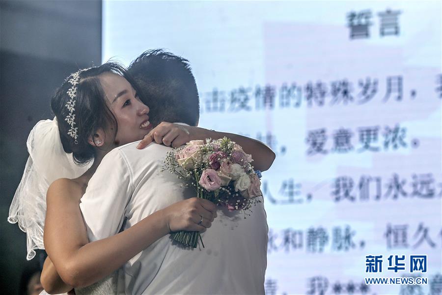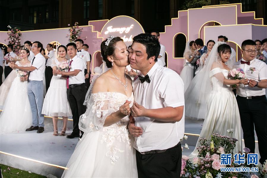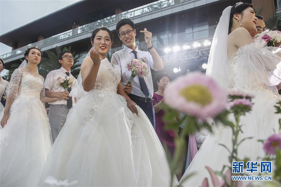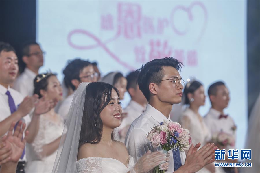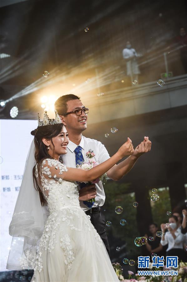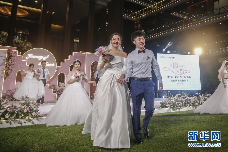 6月6日,新人在海南博鰲樂(lè)城國(guó)際醫(yī)療旅游先行區(qū)參加集體婚禮。當(dāng)日,來(lái)自北京、武漢、廣州等地的30對(duì)新人在海南博鰲樂(lè)城國(guó)際醫(yī)療旅游先行區(qū)參加了一場(chǎng)集體婚禮。參加婚禮的部分新人此前因參加湖北的抗疫工作而推遲了婚期。 新華社記者 張麗蕓 攝