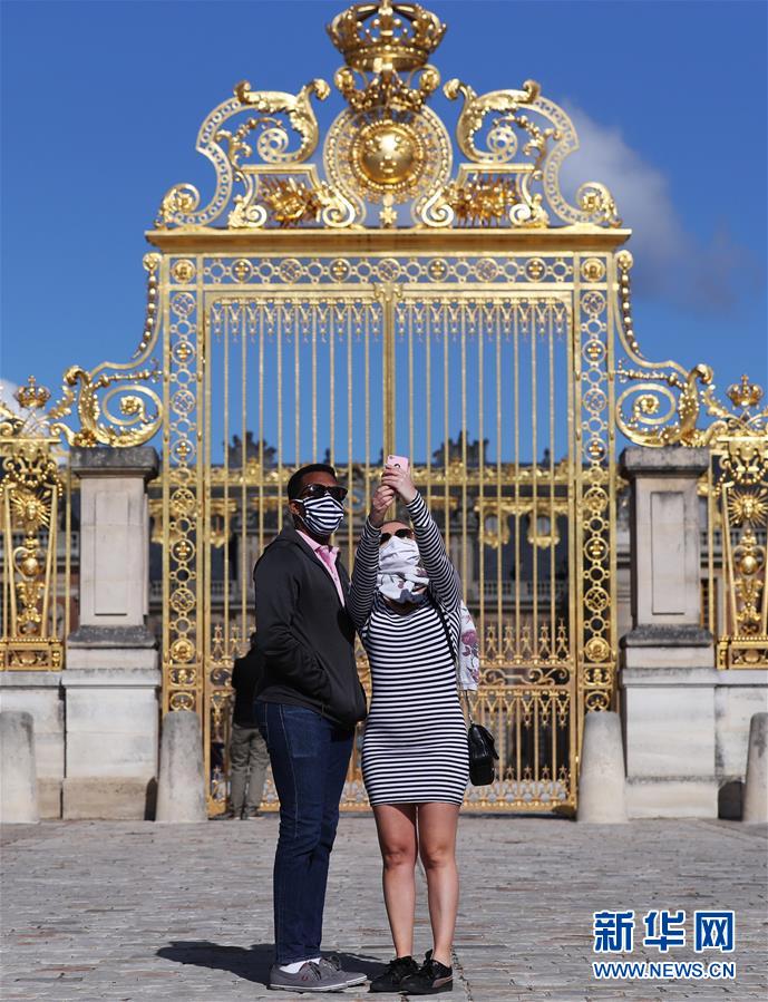 6月6日,游客在法國巴黎近郊的凡爾賽宮前自拍。 新華社記者 高靜 攝