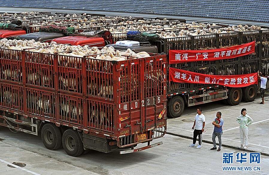 6月7日,裝運湖羊的貨車準備發(fā)車。當日,浙江省湖州市南潯區(qū)湖羊養(yǎng)殖場飼養(yǎng)的五千余頭湖羊啟程運往該區(qū)對口幫扶的四川省廣安市廣安區(qū)。2018年以來,南潯區(qū)依托湖羊養(yǎng)殖產(chǎn)業(yè)優(yōu)勢,積極實施“湖羊入川”和“湖羊致富”工程,向對口幫扶地區(qū)提供優(yōu)質(zhì)湖羊種羊和湖羊養(yǎng)殖技術指導。截至目前,南潯區(qū)已向廣安等地提供1.2萬余頭扶貧湖羊。新華社記者譚進攝