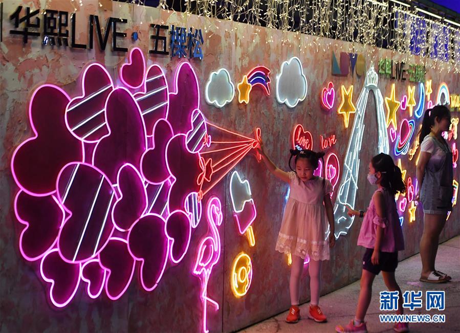 6月6日,小朋友在北京五棵松華熙Live游玩。6月6日晚,北京79個地標、商圈、特色街區(qū)同時點亮夜京城,營造消費氛圍,北京“夜經(jīng)濟”也加速回暖。新華社記者張晨霖攝