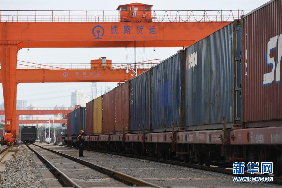 6月6日,合肥首開至荷蘭蒂爾堡的中歐班列(上)準備從合肥北站物流基地駛出(無人機照片)。當日,搭載82個標準集裝箱的中歐班列從中國鐵路上海局集團有限公司合肥貨運中心合肥北站物流基地駛出發(fā)往荷蘭蒂爾堡,標志著合肥中歐班列通往荷蘭蒂爾堡的線路正式開通。新華社記者張端攝