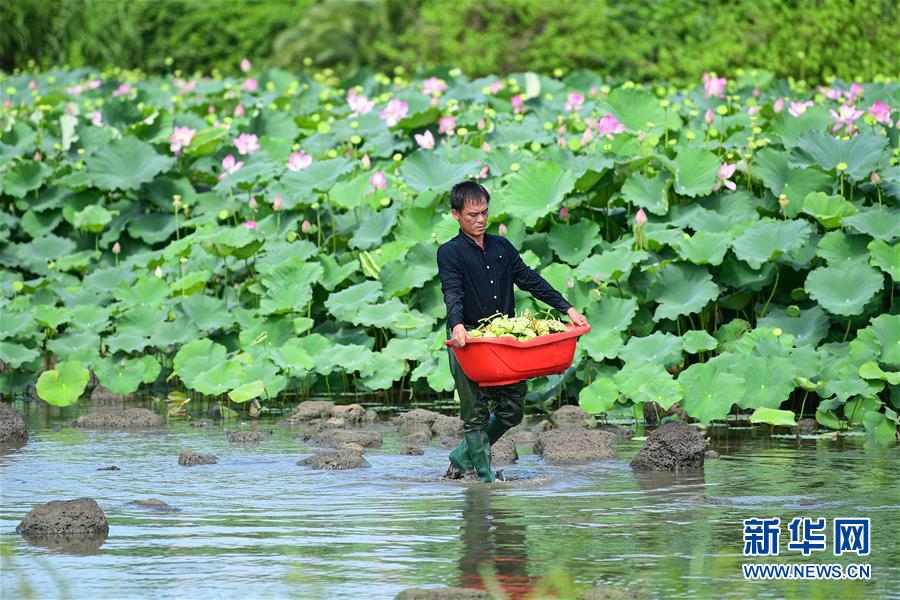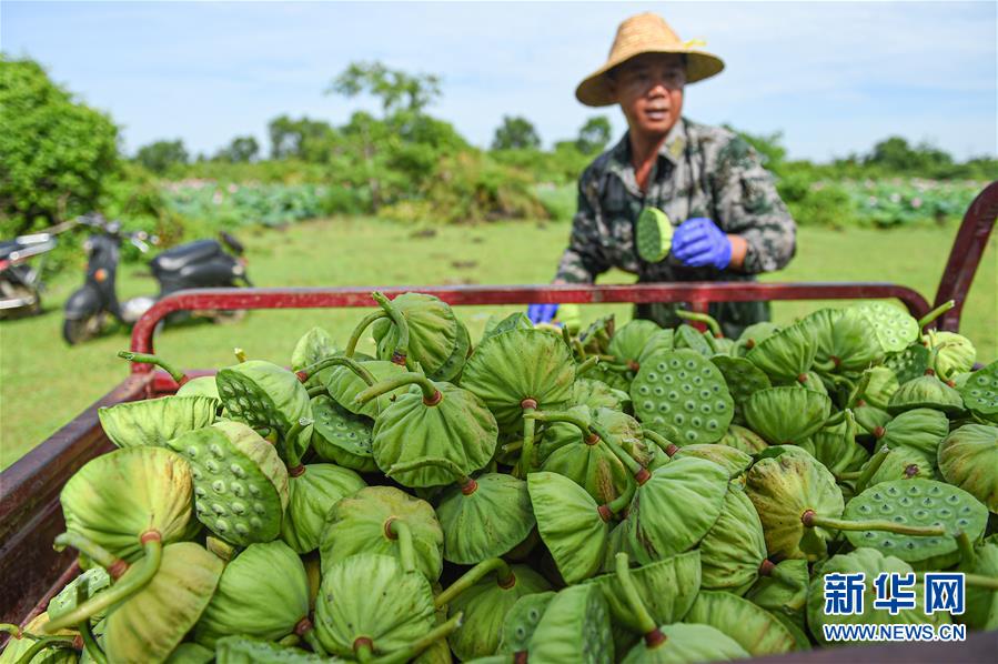 6月9日,村民在??邶埲A區(qū)龍泉鎮(zhèn)美仁坡村采摘蓮蓬。初夏時(shí)節(jié),位于海南??邶埲A區(qū)龍泉鎮(zhèn)的蓮蓬逐漸成熟,當(dāng)?shù)卮迕窦泳o采摘,一派繁忙景象。新華社記者蒲曉旭攝