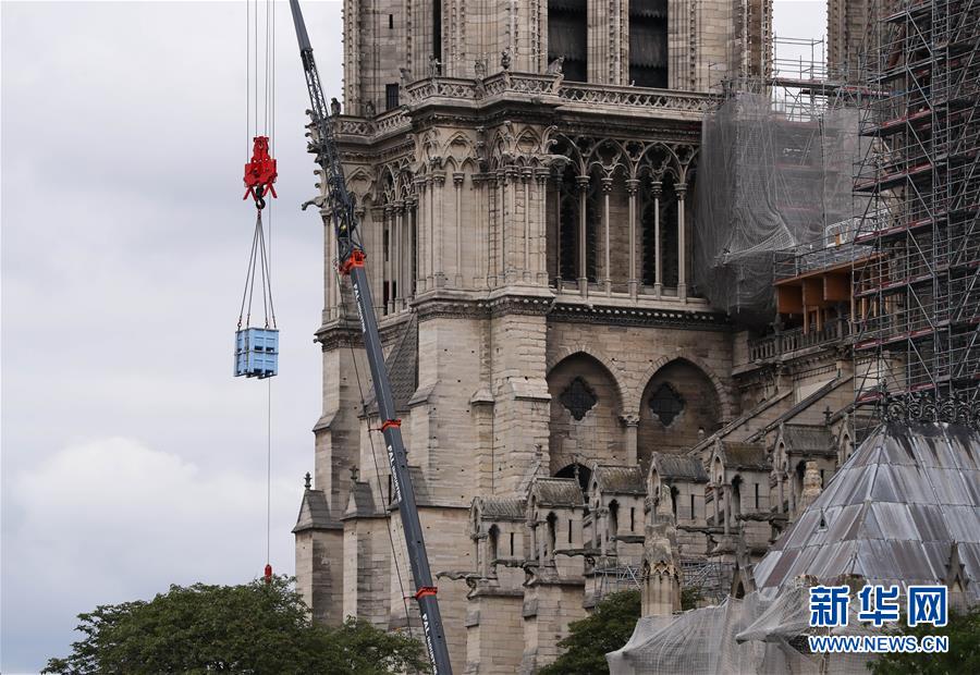 這是6月9日在法國巴黎拍攝的正在進行腳手架拆除工作的巴黎圣母院。法國巴黎圣母院于8日開始拆除去年大火中被焚的腳手架。作為巴黎圣母院修復(fù)工作的重要組成部分,這項工程預(yù)計將持續(xù)至少3個月。2019年4月15日,巴黎圣母院遭遇大火,當時圣母院正在進行維修,搭建的腳手架在火災(zāi)中損毀、變形。新華社記者高靜攝