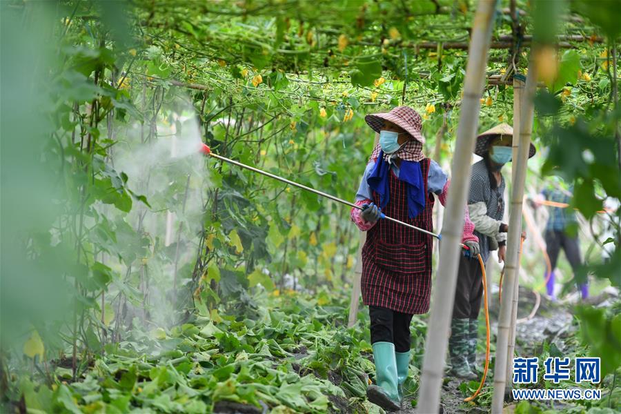 6月9日,在江華瑤族自治縣濤圩鎮(zhèn)鳳尾村蔬菜基地,農戶對農作物進行噴灑消毒。近日,受連續(xù)強降雨影響,湖南省永州市江華瑤族自治縣遭遇洪澇災害,部分農田受災。目前,江華瑤族自治縣洪水已退,群眾在當?shù)叵嚓P部門引導下積極開展生產自救。新華社記者陳澤國攝