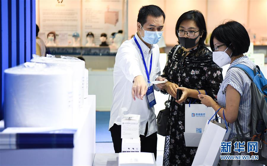 6月10日,一名參展商(左)向采購(gòu)商講解口罩生產(chǎn)原料及工藝。當(dāng)日,廣州國(guó)際防疫物資展覽會(huì)在保利世貿(mào)博覽館舉行。本次展會(huì)面積共計(jì)3.6萬(wàn)平方米,設(shè)有防疫產(chǎn)品、設(shè)備、綜合服務(wù)、原輔料等4個(gè)展區(qū),參展企業(yè)約600家。新華社記者鄧華攝