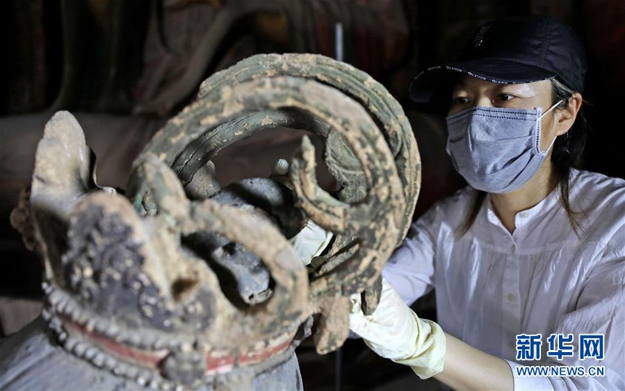 6月8日,工作人員對奉國寺的彩繪泥塑進行保護修復。新華社記者 姚劍鋒 攝