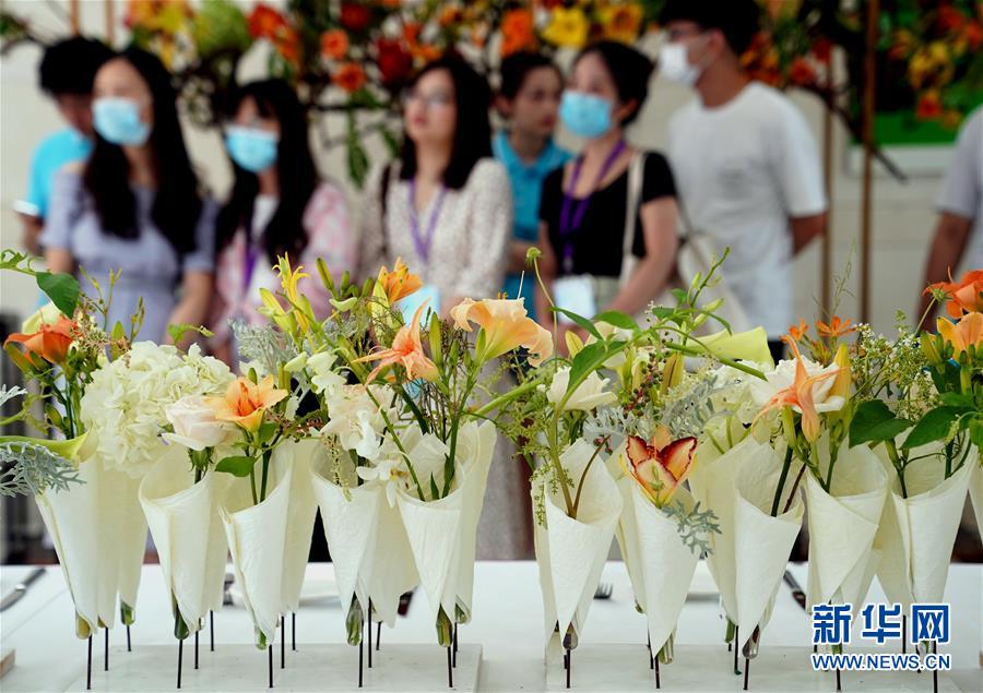 這是開(kāi)幕式現(xiàn)場(chǎng)展示的大學(xué)生設(shè)計(jì)創(chuàng)作的萱草花小花束(6月13日攝)。6月13日,“2020中國(guó)(上海)萱草文化節(jié)”在上海應(yīng)用技術(shù)大學(xué)開(kāi)幕,校園里數(shù)百個(gè)品種的萱草花競(jìng)相綻放,萱草科研推廣、萱草文化交流等多項(xiàng)活動(dòng)同時(shí)舉行。新華社記者 劉穎 攝