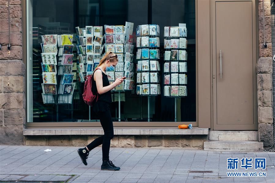 6月13日,一名戴口罩的女子走在比利時(shí)布魯塞爾街頭。新華社記者 張鋮 攝