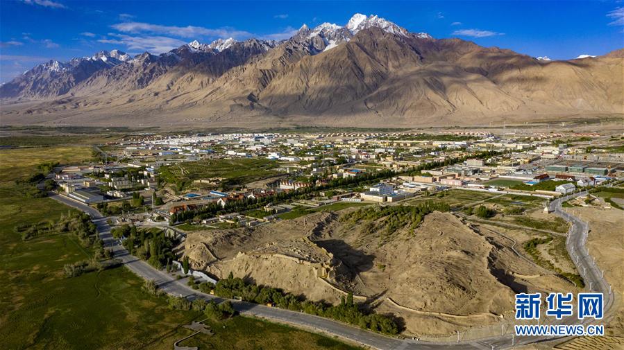 位于帕米爾高原上的新疆塔什庫(kù)爾干塔吉克自治縣縣城(6月10日攝,無(wú)人機(jī)照片)。新華社記者胡虎虎攝