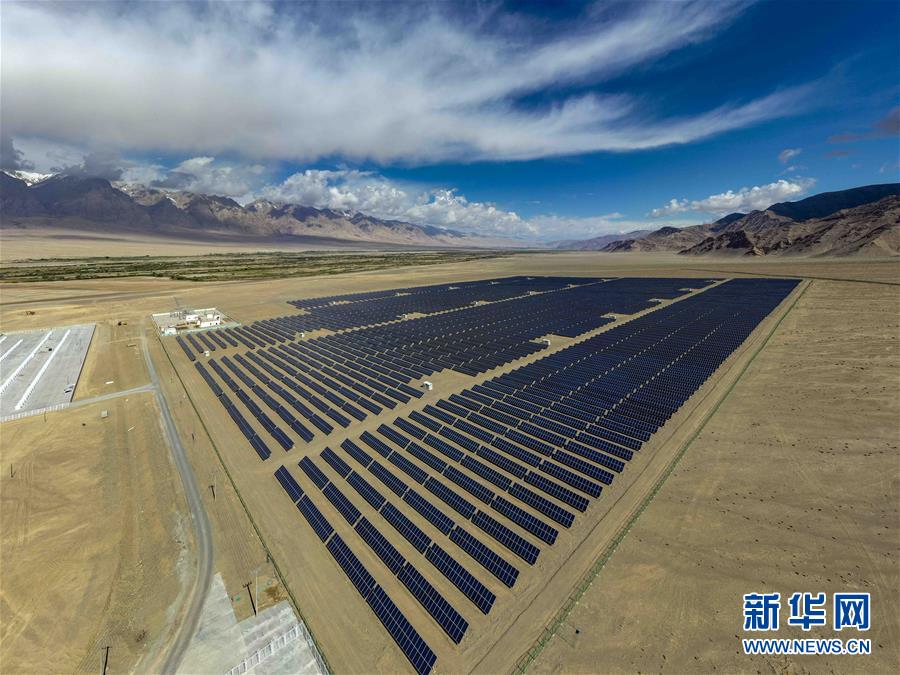 深圳援建的新疆塔什庫爾干塔吉克自治縣2萬千瓦太陽能光伏扶貧電站(6月15日攝,無人機照片)。新華社記者胡虎虎攝