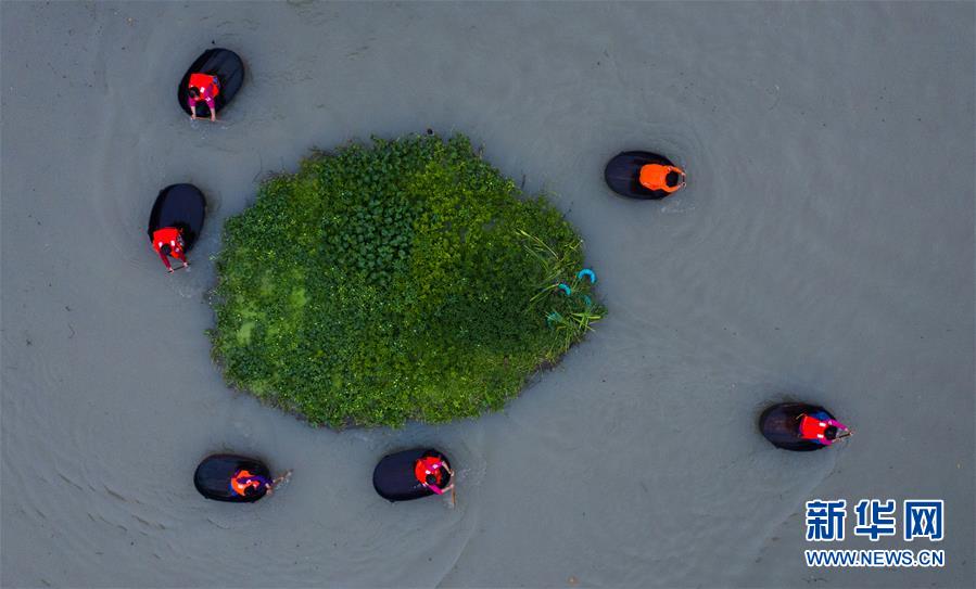 6月23日,東林鎮(zhèn)村民劃著菱桶采收荷花和蓮蓬(無人機(jī)照片)。當(dāng)日,浙江省湖州市東林鎮(zhèn)在泉心村荷花池舉辦“慶端午劃菱桶”趣味活動。村民們劃著菱桶在水面上你追我趕,同時采收荷花和蓮蓬,呈現(xiàn)出水鄉(xiāng)特有的端午節(jié)日氛圍。在河網(wǎng)密布的東林鎮(zhèn),菱桶是水鄉(xiāng)家家戶戶都有的一種傳統(tǒng)水上勞動工具,村民在捕魚、采菱、采荷時都要用到。新華社記者徐昱攝