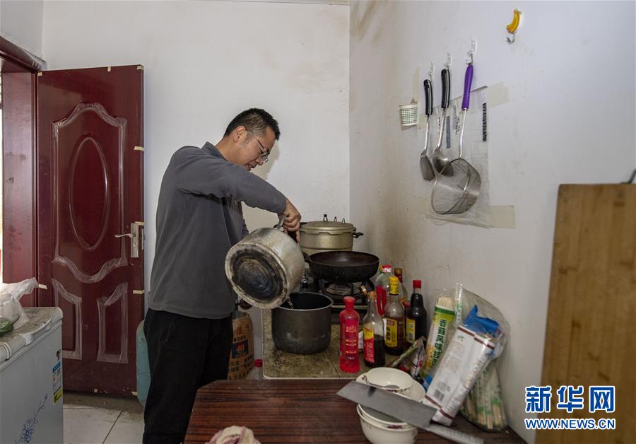 在位于新疆阿克陶縣布倫口鄉(xiāng)蘇巴什村的生活區(qū),天文科技工作者馮國(guó)杰在做飯(6月16日攝)。新華社記者胡虎虎攝