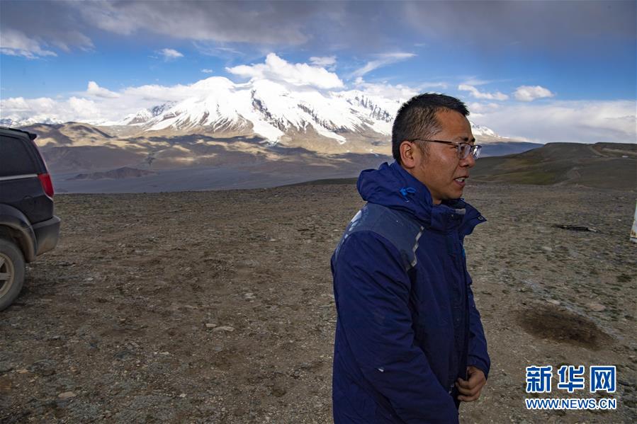 到達(dá)慕士塔格觀(guān)測(cè)站后,冷風(fēng)襲來(lái),馮國(guó)杰穿上沖鋒衣,拉上拉鏈(6月15日攝)。新華社記者胡虎虎攝