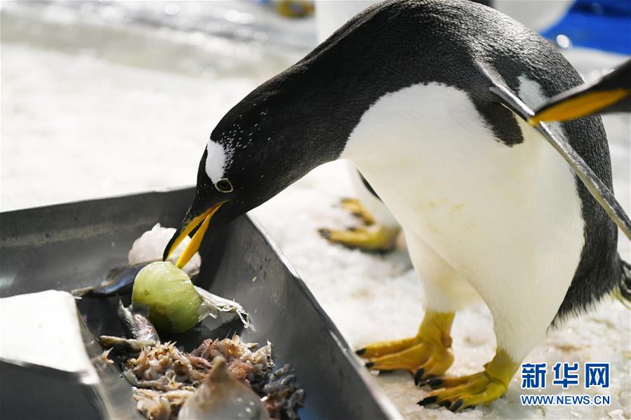 6月24日,哈爾濱極地館的企鵝在品嘗“魚粽”。當(dāng)日,哈爾濱極地館的工作人員特地準(zhǔn)備了“魚粽”“肉粽”,讓生活在這里的極地動物也品嘗一下端午美食。新華社記者王建威攝