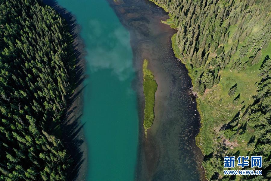 這是6月25日拍攝的新疆喀納斯景區(qū)風(fēng)光(無人機(jī)照片)。新華社記者 沙達(dá)提 攝