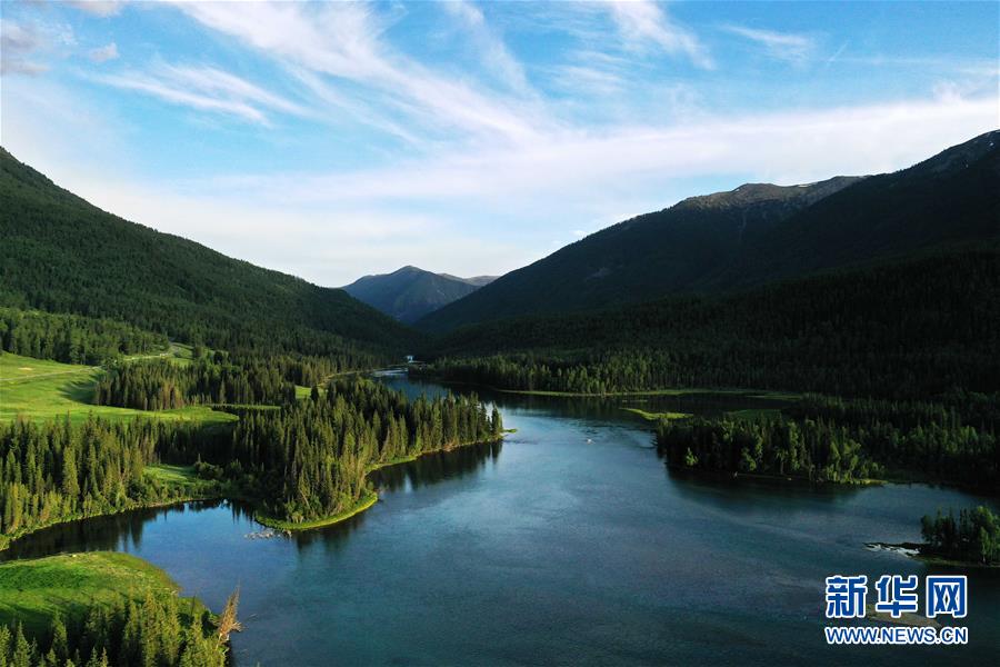 這是6月24日拍攝的新疆喀納斯景區(qū)風(fēng)光(無(wú)人機(jī)照片)。新華社記者 沙達(dá)提 攝