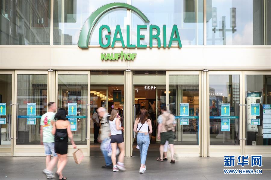 6月27日,在德國(guó)首都柏林,人們走進(jìn)一家商場(chǎng)。新華社記者單宇琦攝