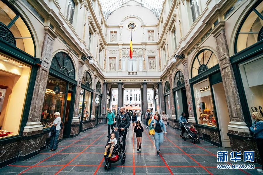 6月28日,游客在比利時布魯塞爾圣于貝爾長廊游覽。近日,隨著歐盟國家間逐步開放邊境,比利時布魯塞爾游客逐漸增多。新華社記者張鋮攝