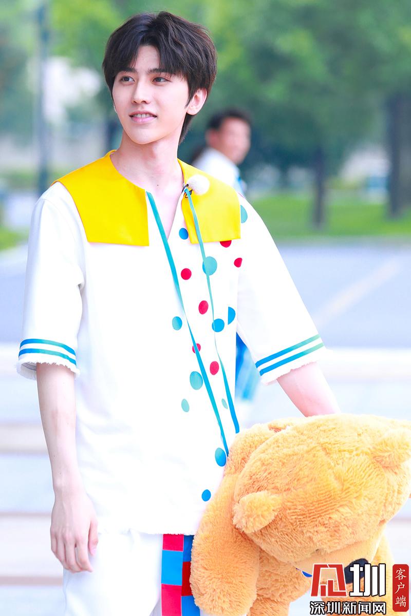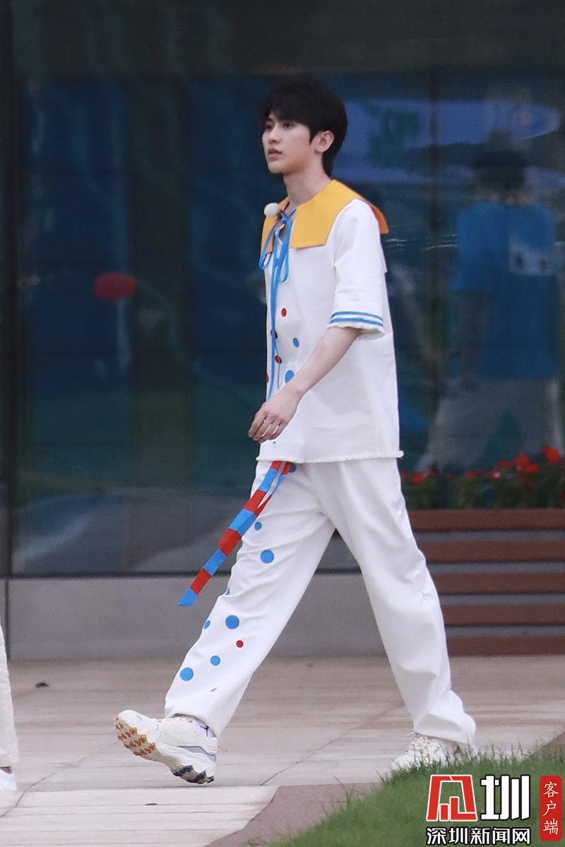 吳謹言身穿藍色上衣搭配白裙秀美腿,少女感十足。