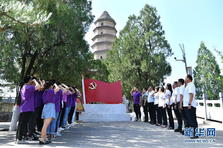 6月29日,黨員干部在延安市寶塔山重溫入黨誓詞。臨近“七一”,革命圣地延安的黨員干部紛紛來到紅色景區(qū),舉行主題黨課、現(xiàn)場(chǎng)教學(xué)、重溫入黨誓詞等活動(dòng)。新華社記者張博文攝